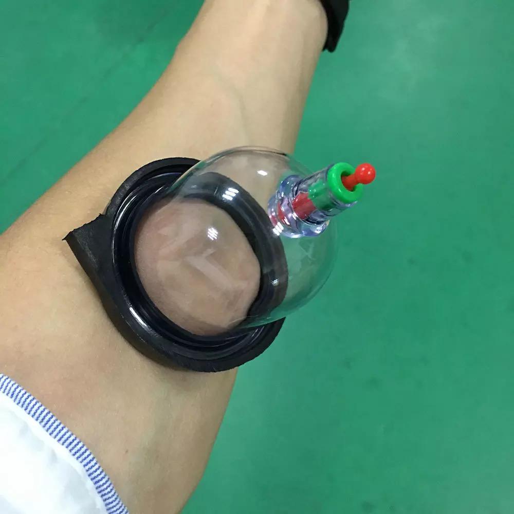 ubicar la ventosa en el area a masajear y usar la manila blanca sobre la base de la copa para crear la succion, posterior conectar el cable al tablero de pulsaciones y preparar el musculo para la terapia, para retirar las ventosas presionar el piston rojo de la base con el fin que bloquee el vacio de la succion, se recomienda usar lubricante frio o el normal a base de agua.