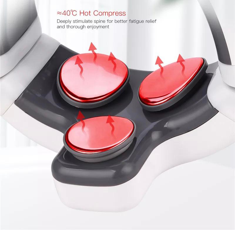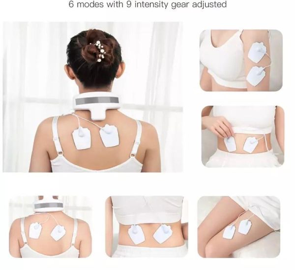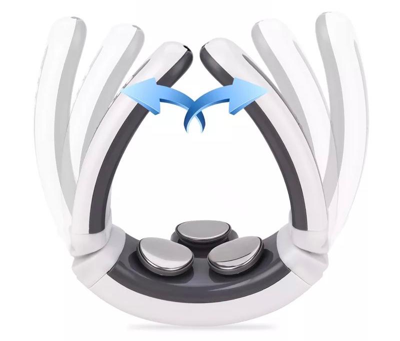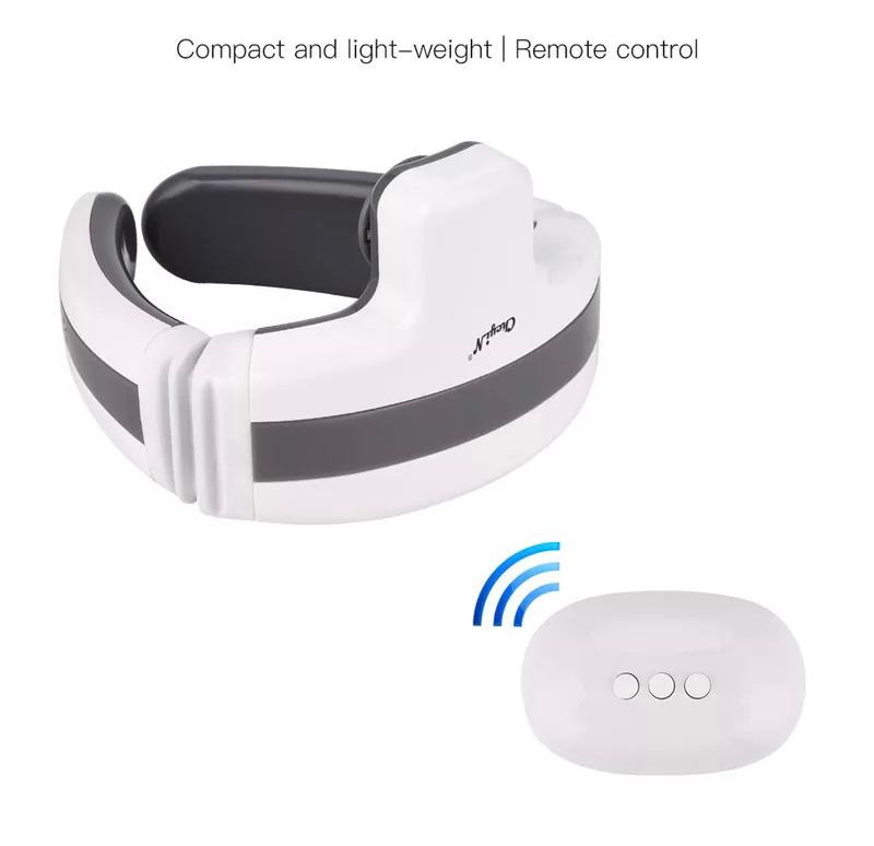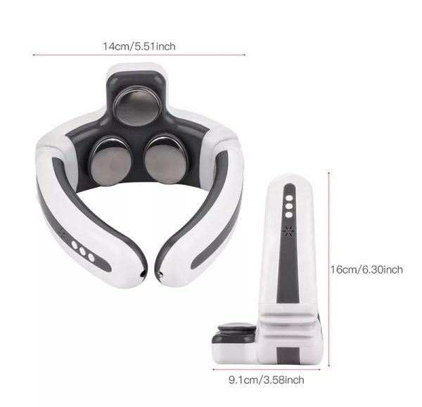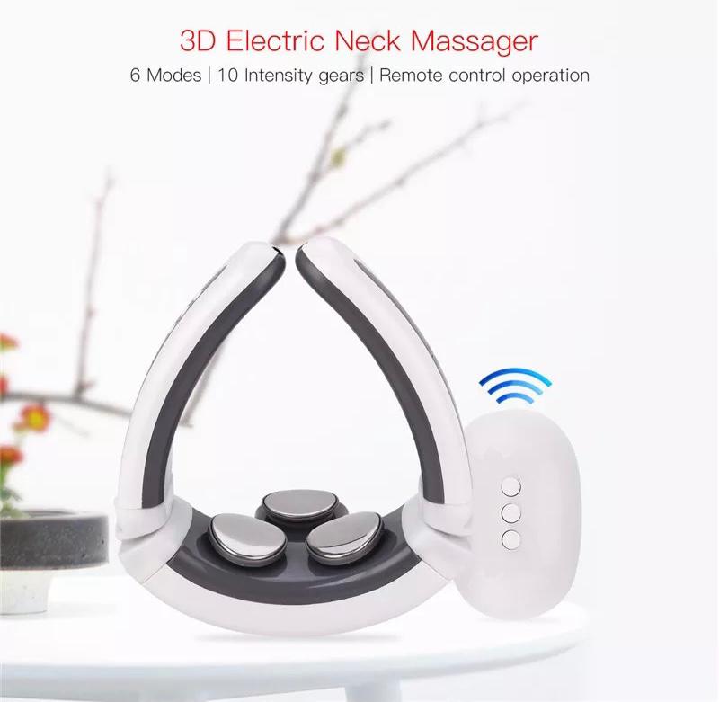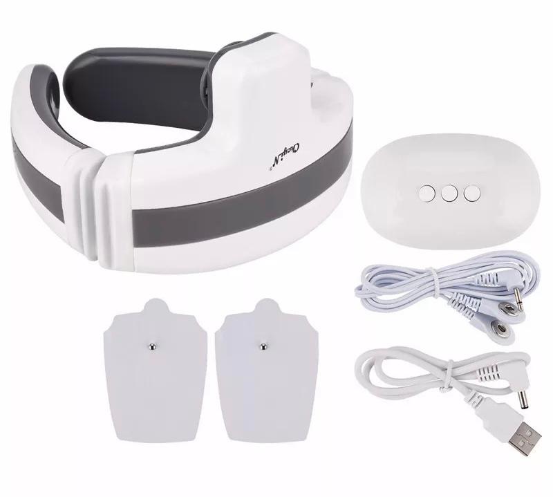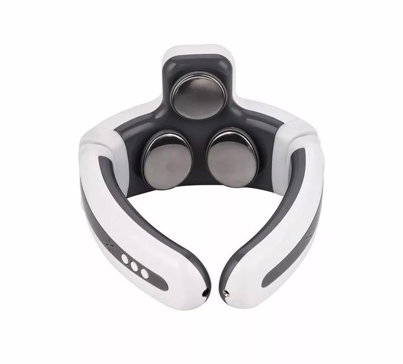 Masajeador de cuello recargable con electroshock que permite la relajación terapéutica muscular ocasionada por el estrés, artículo de calidad medicinal que provee tranquilidad y alivio a los malestares de cuello diseño 3D que se adapta a la curva del cuello, y area cervical alta. con bandas de terapia fisica para masaje de relajacion de la parte baja de la columna,pecho, espalda y brazos. excelente producto para aliviar la fatiga muscular basada en acupuntura china ya que sus iones de electrodos ayudan a la circulacion sanguinea .