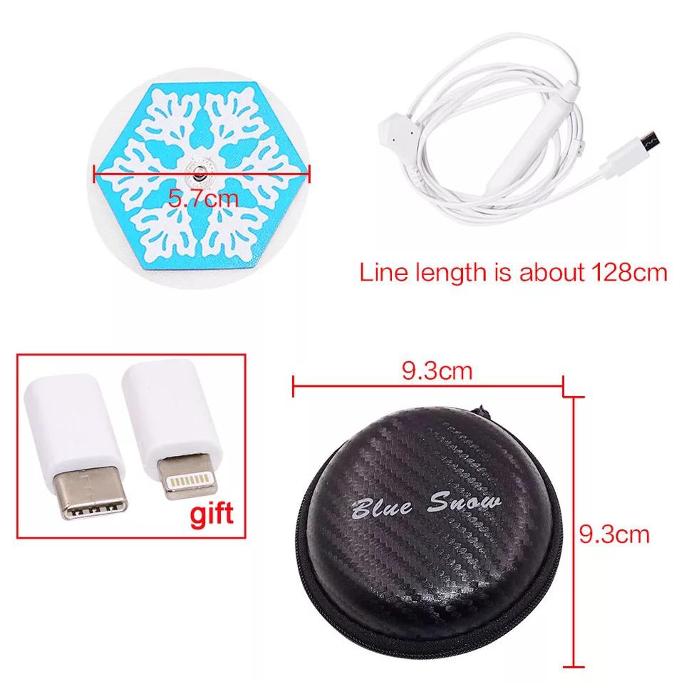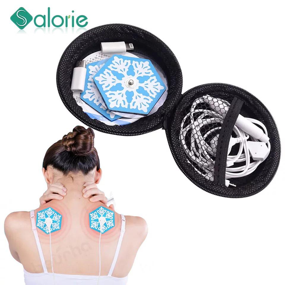 Masajeador muscular con electrodos controlado por celular, artículo de terapia física que permite relajar los músculos por su estimulador de pulsaciones, se puede usar en cualquier parte del cuerpo, posee dos bandas que generan choques de energía la cual produce que el nervio y el musculo de relajen de manera medicinal,